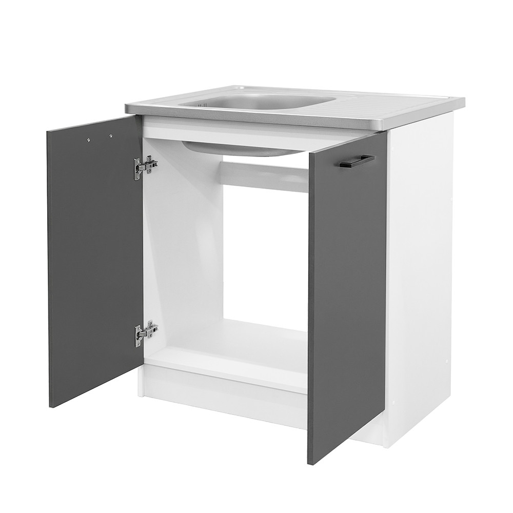 Spodná skrinka Praktik 80 s 2 dvierkami a umývadlom - biely korpus, antracitové čelo