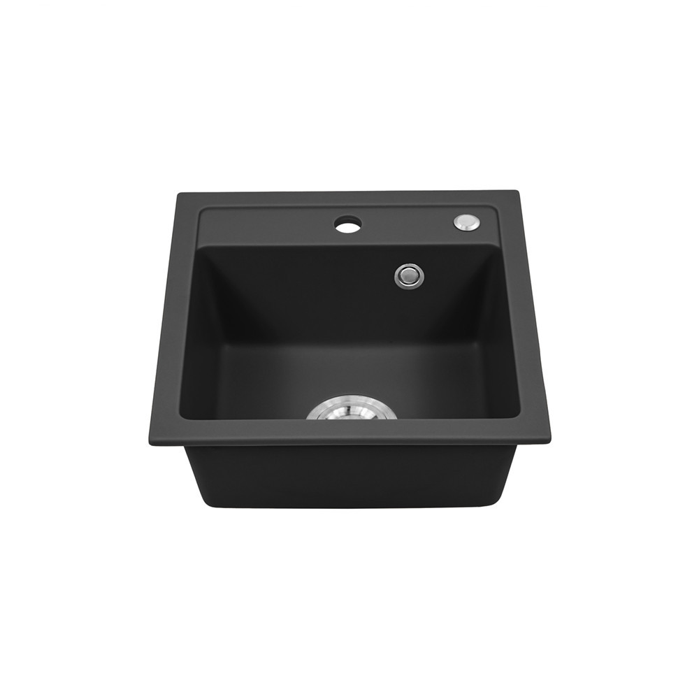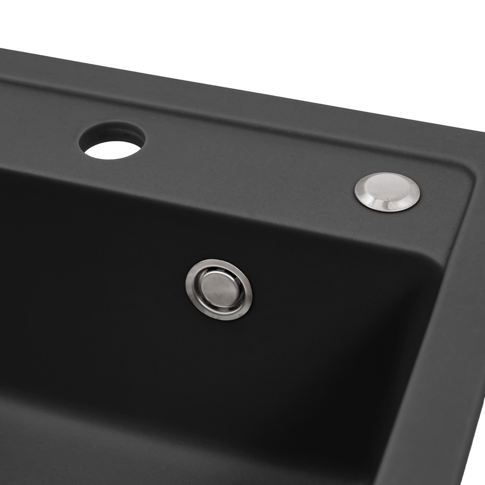 Hranatý drez Nia z čiernej žuly spĺňa estetické aj funkčné požiadavky. Jeho zapustená inštalácia dodá vašej kuchyni moderný vzhľad, zatiaľ čo jeho kompaktné rozmery a prvotriedna kvalita materiálov zaručujú dlhú životnosť.
